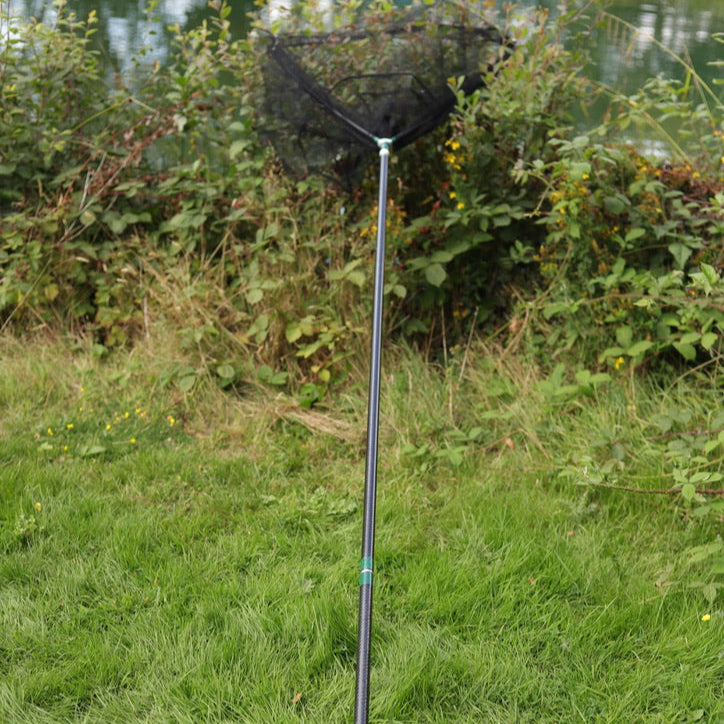 32″ barbel and chub 3K twill carbon landing net with 3K twill carbon 9′ two piece (6' & 3') handle.