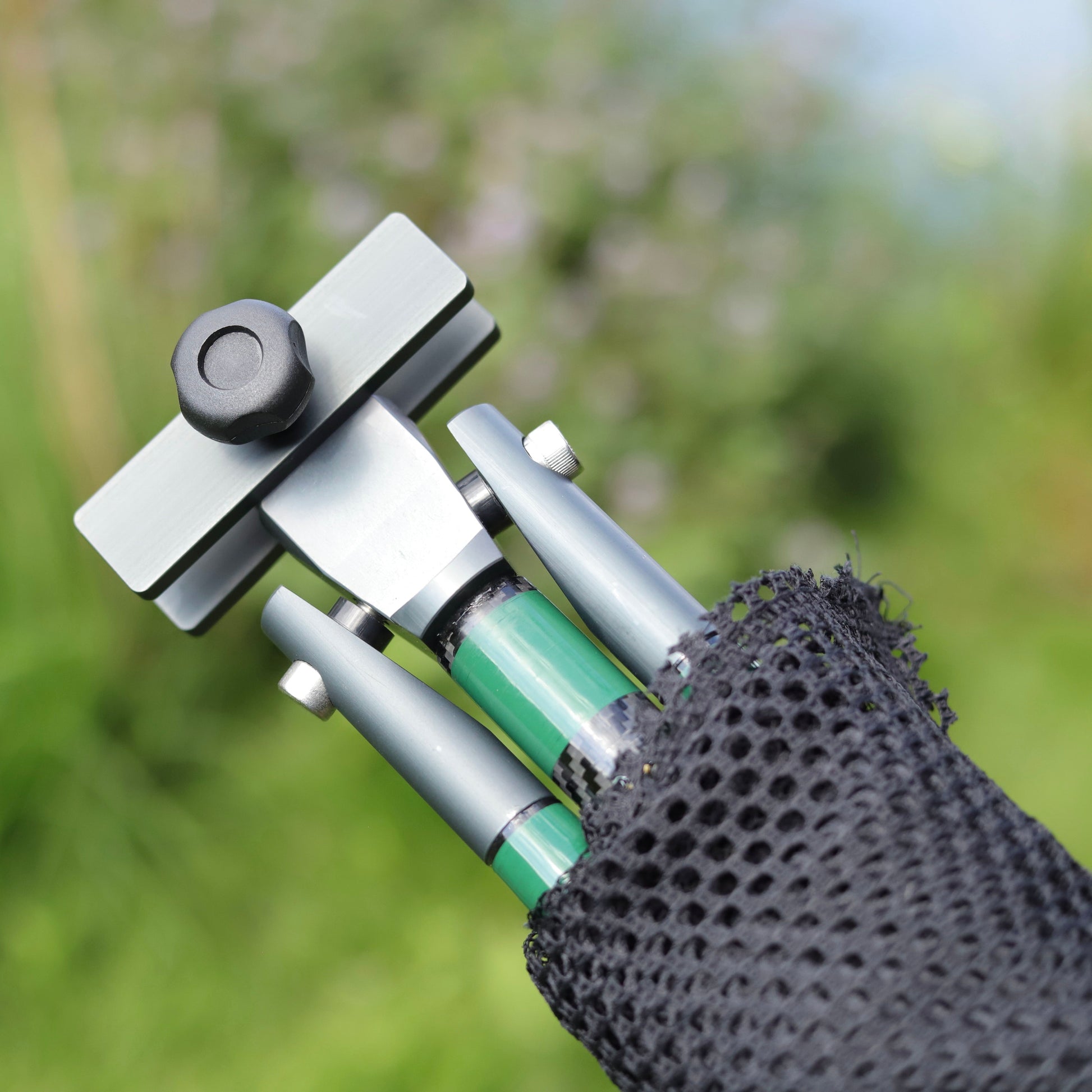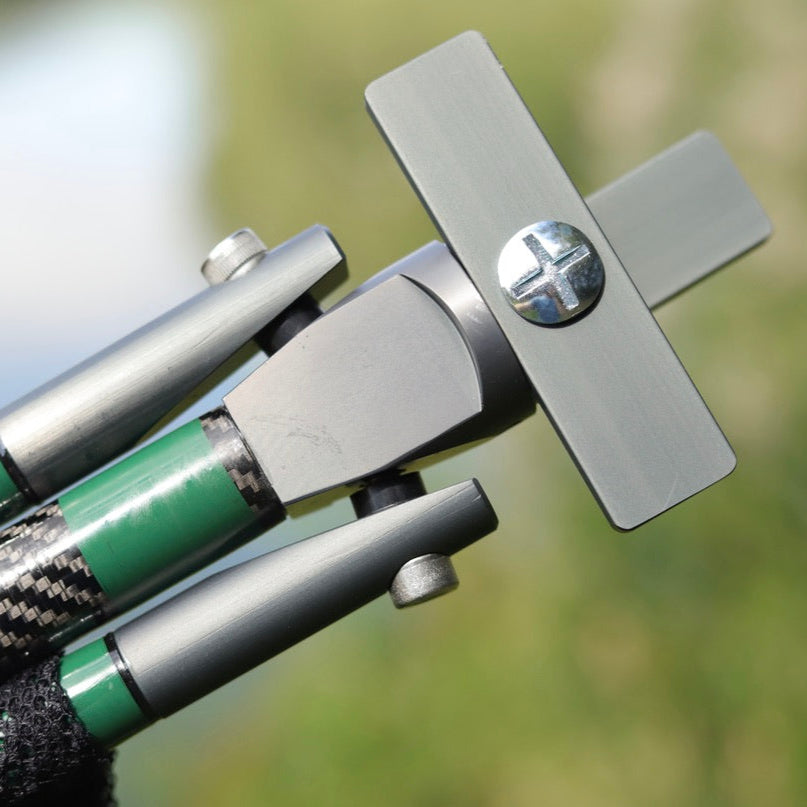 A beautiful one of a kind folding spreader block finished in our signature dark green whipping with 72" arms and carbon handle.