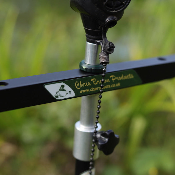 The 2 rod version uses two 10” or 12” buzzer bars. The buzzer bars on this set up fix to the bank stick with a beautifully machined knurled screw. The bars cannot spin round on our unique fixing, which is a very useful advantage. This system offers a wide range of settings and is supplied complete with all fittings and small, neat, rear rod rest heads.